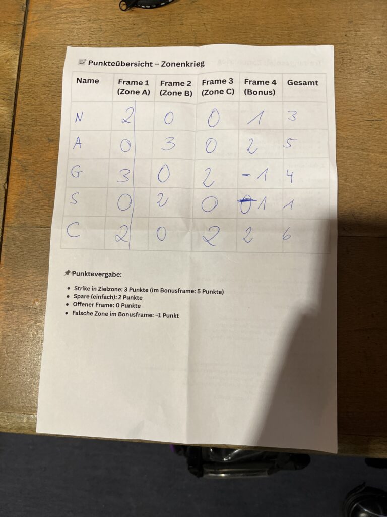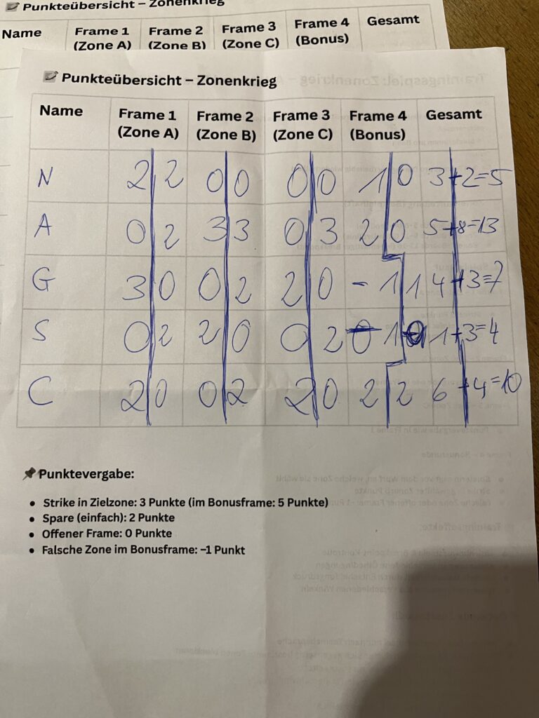 Danach zwei Runden das Zonenkrieg Trainingsspiel. Trainingseffekte: