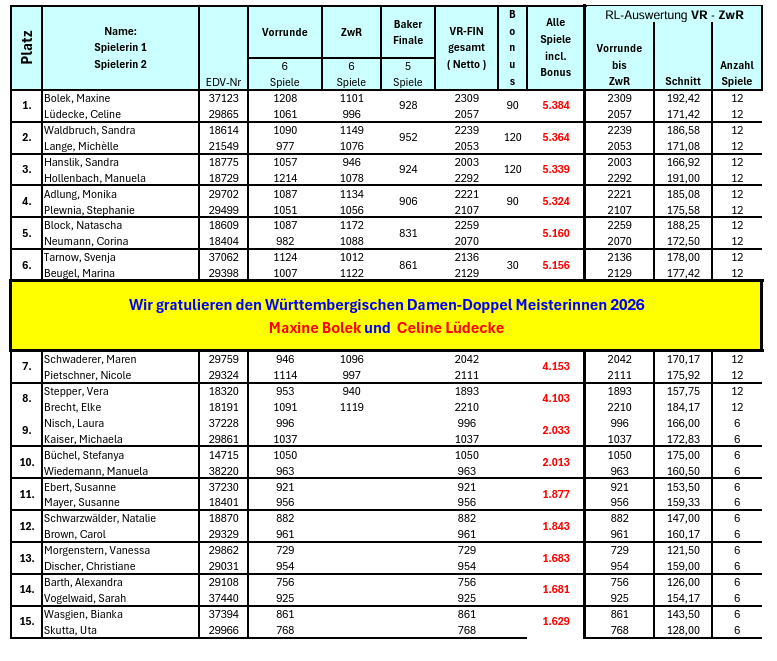181 (2 Räumfehler), 169 (2 Räumfehler, 1 Split), 136 (4 Splits, 1 Räumfehler), 141 (3 Räumfehler, 1 Split), 166 (1 Räumfehler, 1 Split), 169 (1 Räumfehler, 1 Split)