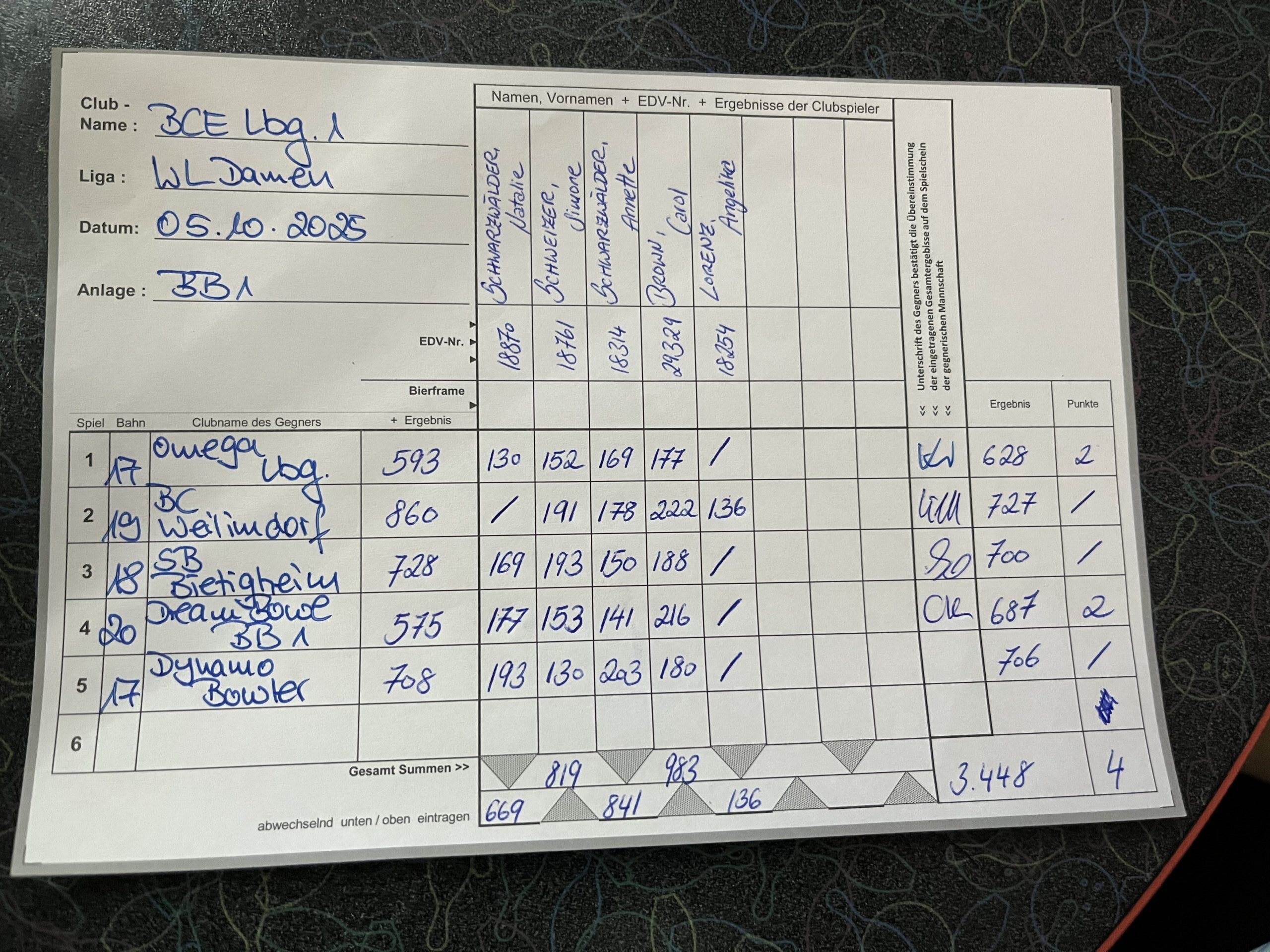 Ahhhh heute war es als Mannschaft für uns bitter. Dennoch haben wir zusammengehalten. Wir gewinnen und wir verlieren gemeinsam! Persönlich lief es für mich ganz gut, konnte mich aber einfach aufgrund der Gesamtsituation nicht so darüber freuen. Manche Spiele knapp verloren und bei den Bonuspunkten war auch nicht wirklich viel für uns drin. Aber wie immer: Aufstehen Krone richten und weiter geht’s 🙂